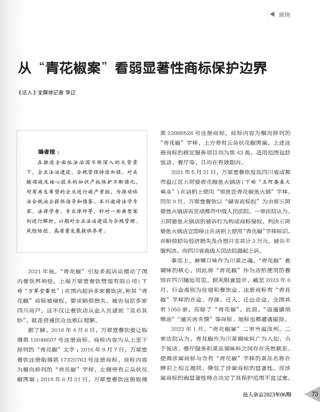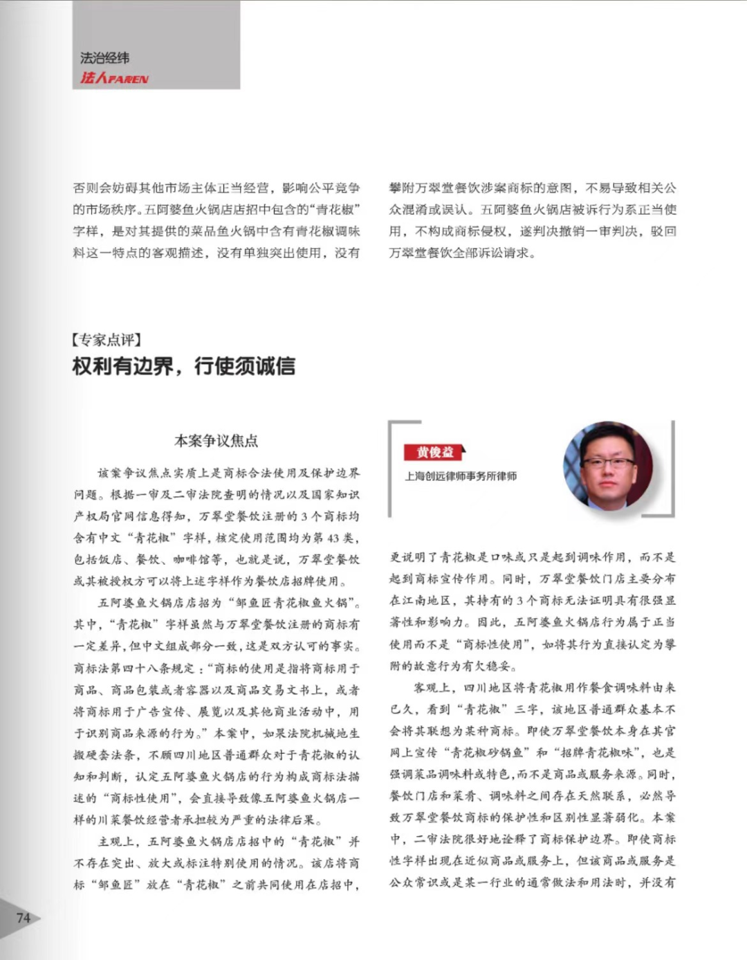 昭通辉知简讯 | 辉知队黄俊益律师应“法治日报”旗下杂志邀请,就“青花椒”案发表专家点评